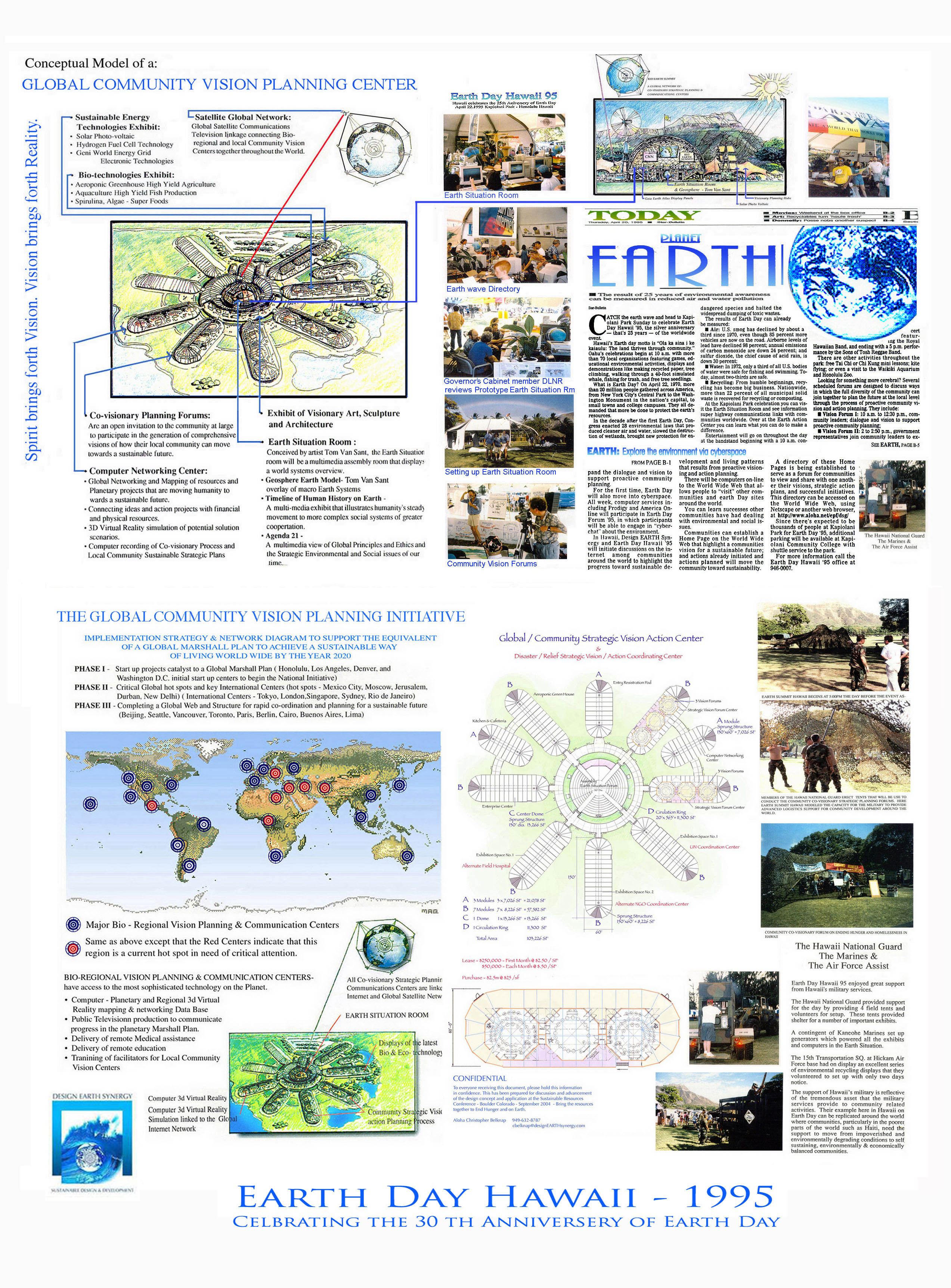 This event was followed by a greatly expanded demonstration of the Earth Situation Room and Community Vision Forums during the 1995- 30th Year Anniversary of Earth Day event in Honolulu.