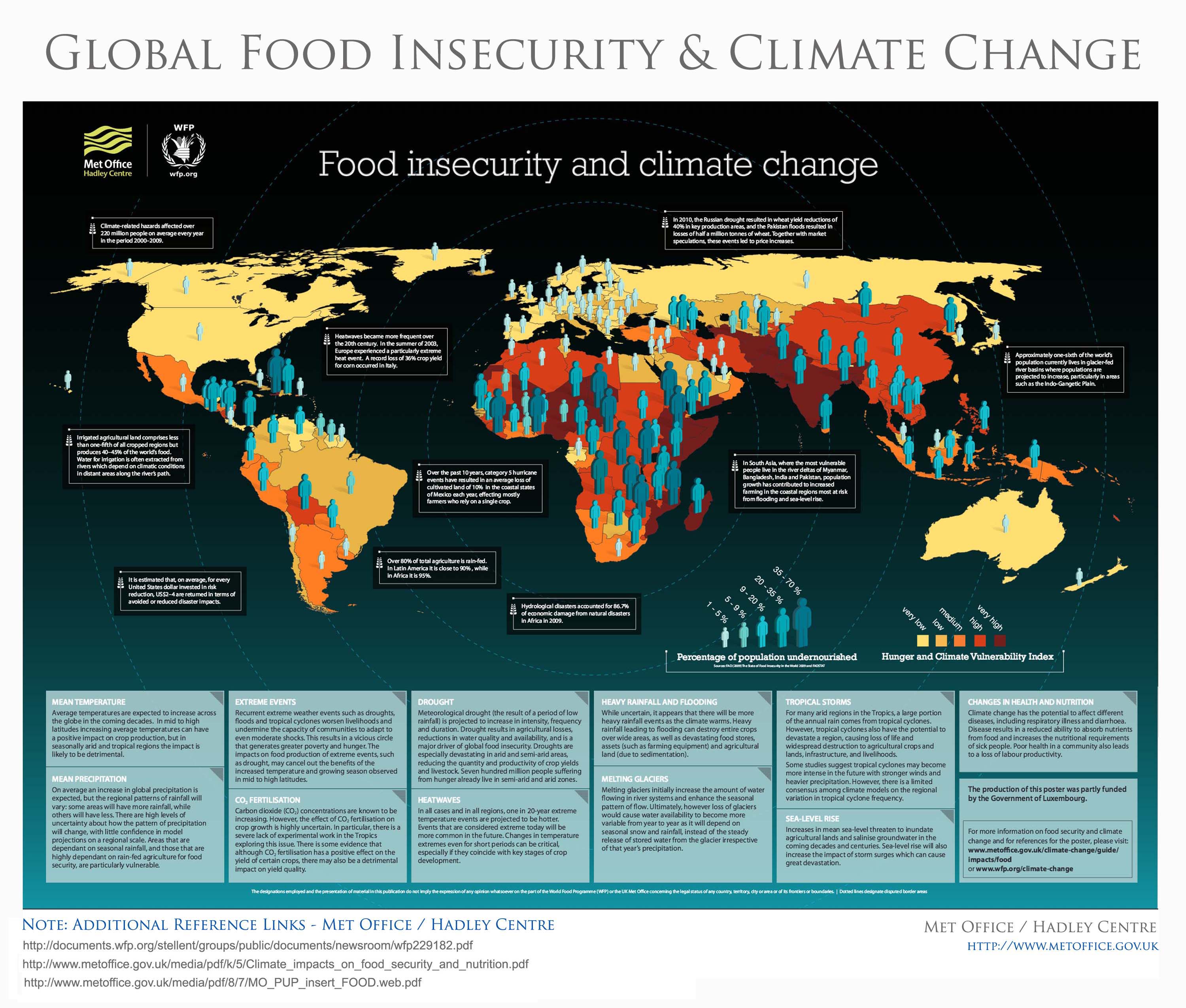 Met Office / Hadley Centre – WFP –World Food Program                                             http://www.metoffice.gov.uk/climate-guide http://documents.wfp.org/stellent/groups/public/documents/newsroom/wfp229182.pdf http://www.metoffice.gov.uk/media/pdf/k/5/Climate_impacts_on_food_security_and_nutrition.pdf WFP – World Food Program http://www.wfp.org/students-and-teachers/teachers/blog/climate-change-why-it-matters-and-how-wfp-taking-action Verisk / Maplecroft – Map of World Terrorism Hotspots https://www.maplecroft.com Water Scarcity UNEP United Nations Environment http://www.unep.org/ https://www.youtube.com/watch?v=XGgYTcPzexE&feature=youtu.be CEOS – Committee on Earth Observation Satellites http://www.eohandbook.com/eohb05/ceos/part2_5.html Woods Hole Oceanographic Institution http://www.whoi.edu/page.do?pid=83341&tid=3622&cid=13366 US Global Change Research Program http://www.globalchange.gov/browse/sea-level-rise-tool-sandy-recovery Bright Source – IVANPAH – Clean Energy Solar Tower Power Plant            http://www.brightsourceenergy.com/ivanpah-solar-project#.Vg7KRntdDKI Popular Science – Where will the World’s Water Conflicts Erupt?                                 http://www.popsci.com/article/science/where-will-worlds-water-conflicts-erupt-infographic